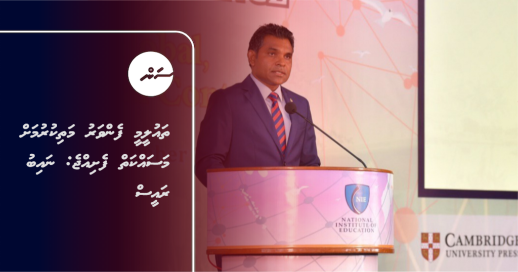 އިންޓަނޭޝަނަލް އިންސްޓިޓިއުޓް އޮފް އެޑިއުކޭޝަންގެ ފަރާތުން އިންތިޒާމުކޮށްގެން އައްޑޫ ސިޓީގައި މިއަދު ފެށި އިންޓަނޭޝަނަލް ޓީޗާސް ކޮންފަރެންސް ފެށުމުގެ ރަސްމިއްޔާތު ޝަރަފުވެރިކޮށްދެއްވައި ވާހަކަ ދައްކަވަމުން ނައިބު ރައީސް ވިދާޅުވީ ތައުލީމީ ދާއިރާއަށް މި ސަރުކާރުން އިންގިލާބެއް ގެންނާނެ ކަމަށެވެ.