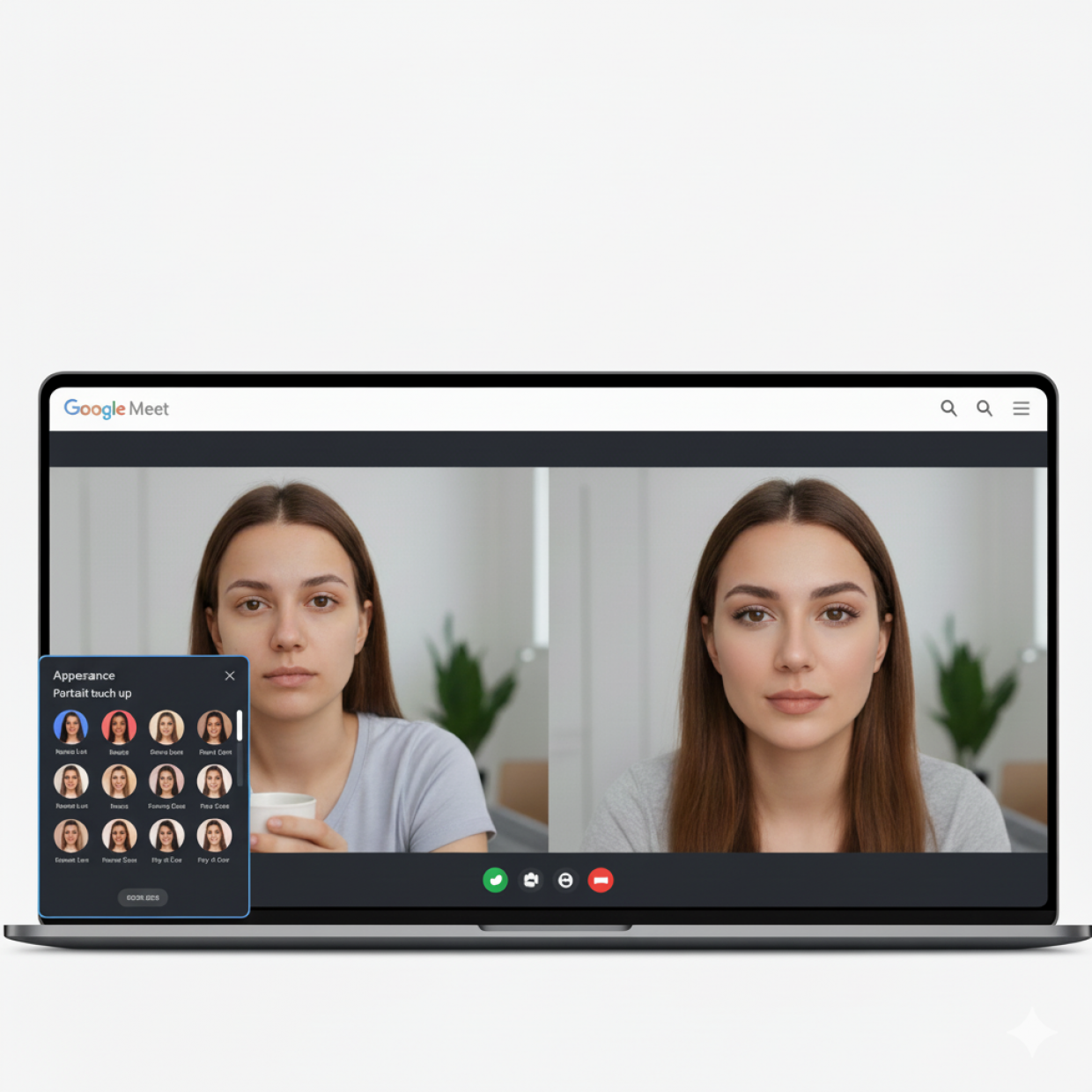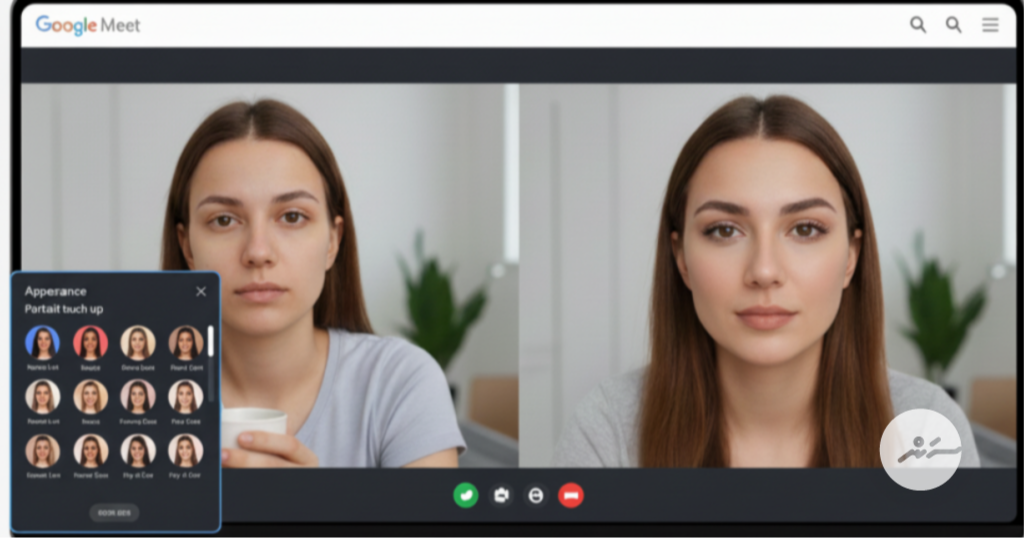 ގޫގުލް މީޓުން އަލަށް ތައާރަފުކުރި މި ފީޗާގައި 12 ވަރަކަށް މޭކަޕްގެ ބާވަތް ނެގުމުގެ ފުރުސަތު ދެއެވެ. މި ފީޗާ ހުންނާނީ "އެޕިއަރަންސް" ސެކްޝަންގެ ދަށުން "ޕޯޓްރެއިޓް ޓަޗް-އަޕް"ގައި ހިމެނިފައެވެ.