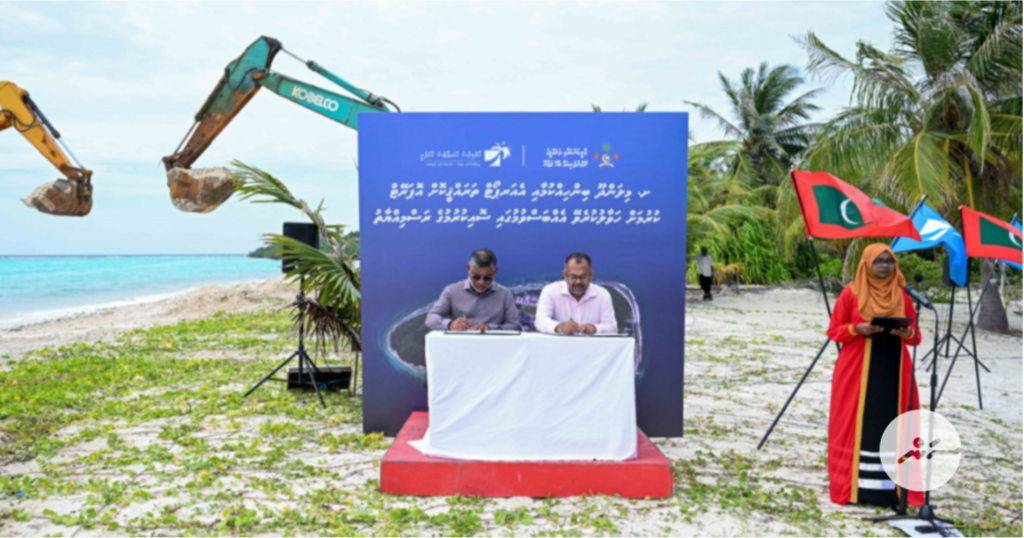 "ބިން ހިއްކުމުގެ އަމަލީ މަސައްކަތް މިއަދުން ފެށިގެން އެންމެ ގިނަ ދުވަސްވެގެން އަށް މަސް ދުވަހުގެ ތެރޭގައި ނިމިގެން ދާނެ، މިއަދުން ފެށިގެން 30 މަސްދުވަހުގެ ތެރޭގައި، މާނައަކީ ދެ އަހަރާއި ބައި އެންމެ ގިނަވެގެން ވެގެންދާނީ މި އެއާޕޯޓު ނިންމަން،" ރައީސް ވިދާޅުވިއެވެ.