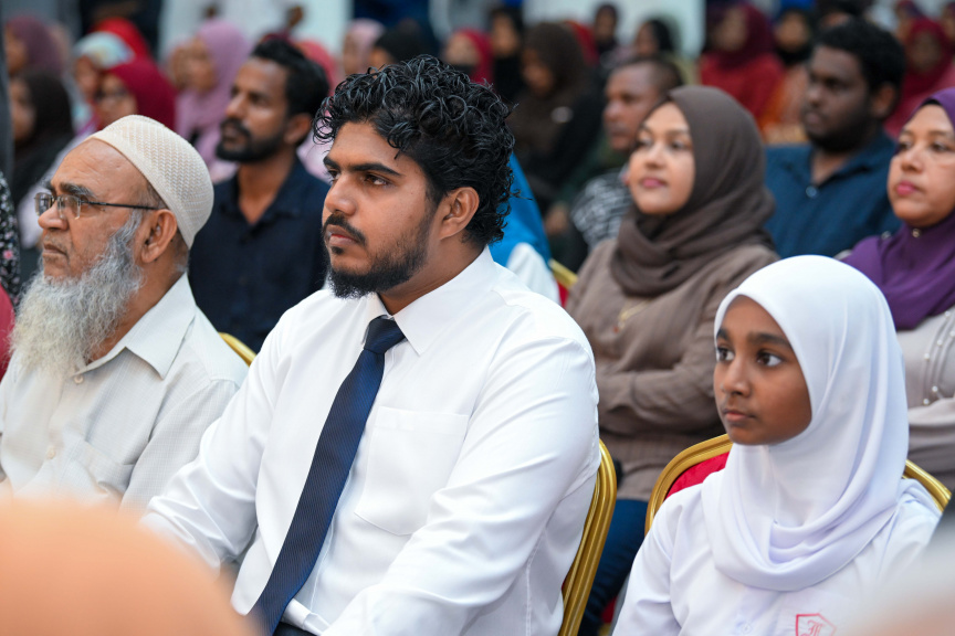 ފޭދުގައި އޮތް ޖަލްސާއެއްގައި އަޒާން: އައްޑޫ ބައިބައިވެއްޖެ ނަމަ، އެ ސިޓީގެ ބާރު ގެއްލޭނެ ކަމަށް އޭނާ ވިދާޅުވި -- ފޮޓޯ/ ރައީސް އޮފީސް