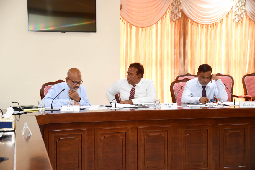 ރައްޔިތުންގެ މަޖިލީހުގެ މާލިއްޔަތު ކޮމިޓީގެ ބައެއް މެންބަރުން: ހުޅުމާލެ ދެކުނު ދާއިރާގެ މެންބަރު ޑރ. އަހްމަދު ޝަމްހީދާއި ހަނިމާދޫ ދާއިރާގެ މެންބަރު އަބްދުލްޣަފޫރު މޫސާއާއި މަޖިލީހުގެ ނައިބު ރައީސް އަހްމަދު ނާޒިމް (ކ-ވ) --- ފޮޓޯ: މަޖިލިސް