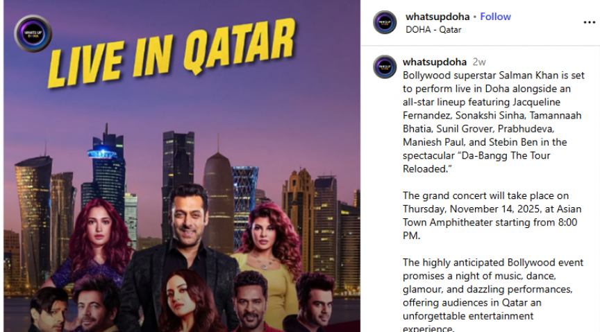 ގަތަރުގެ ދޯހާގައި ބާއްވާ 'ދަ-ބަންގް ޝޯ'ގެ ޕޯސްޓަރެއް އިންސްޓަގްރާމްގައި އިޝްތިހާރުކޮށްފައި--ފޮޓޯ/އެންޑީޓީވީ
