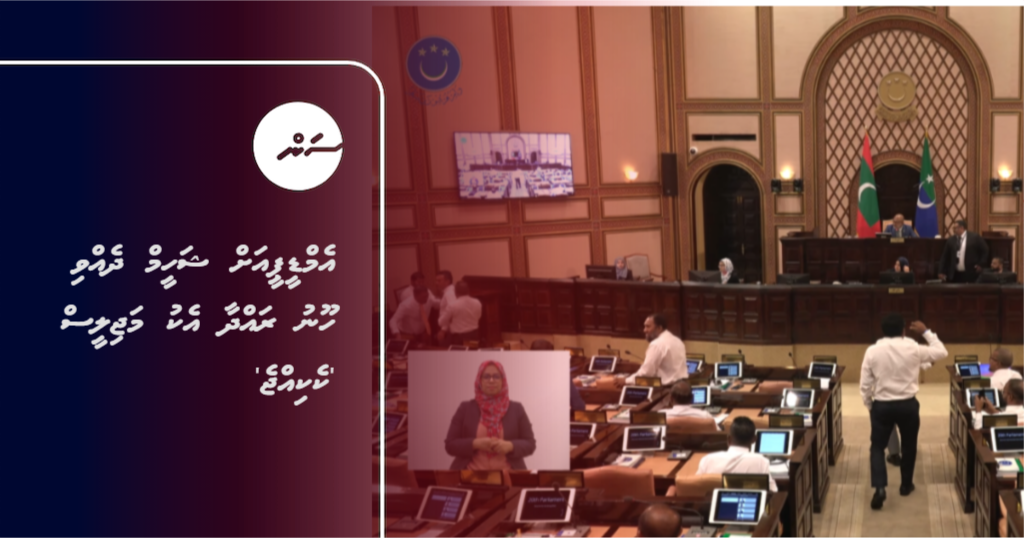"އިއްޒަތްތެރި މެންބަރު އަޑުއައްސަވާ. ސުވާލުކުރައްވާފައި ޖަވާބު އަޑުއައްސަވަން ވާނެ އެނގޭތޯ،" އަޑުގަދަކުރަން ފެށުމުން ޝަހީމް އެ ކަމަށް ވެސް އިޝާރާތްކުރެއްވިއެވެ.