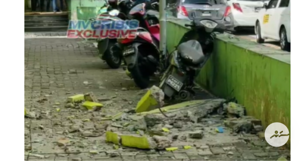 އެ ވަގުތު އެ ފުލެޓު ކައިރީ ޕާކުކޮށްފައި ހުރި ސައިކަލަކަށް ގެއްލުންތައް ލިބިފައިވާ މަންޒަރު ވީޑިއޯއިން ފެނެއެވެ.