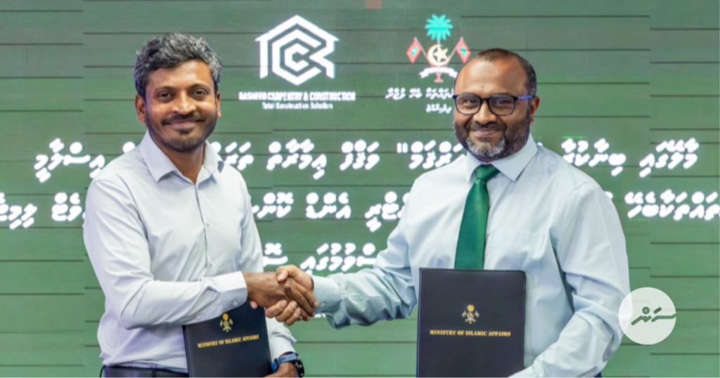 ޖުމުލަ 39 މިލިއަން ރުފިޔާގެ އަގަކަށް ދާރުލްއަރުޤަމް ވަޤުފް އިމާރާތުގެ މަސައްކަތް ރަޝީދު ކާޕެންޓްރީ އެންޑް ކޮންސްޓްރަކްޝަން (އާރުއާރުސީ)އާ ހަވާލުކުރަން އިސްލާމިކް މިނިސްޓްރީން މިއަދު އެއްބަސްވުމެއްގައި ސޮއިކޮށްފިއެވެ.