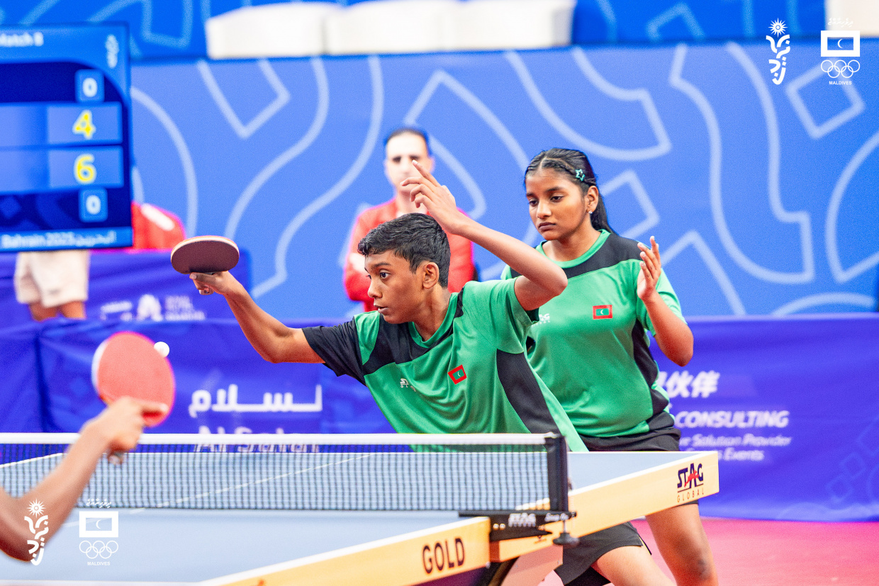 އޭޝިއަން ޔޫތު ގޭމްސް 2025 ގައި ރާއްޖޭގެ ޓީޓީ ޓީމު ކުޅުނު މެޗެއްގެ ތެރެއިން-- ފޮޓޯ: އެމްއޯސީ