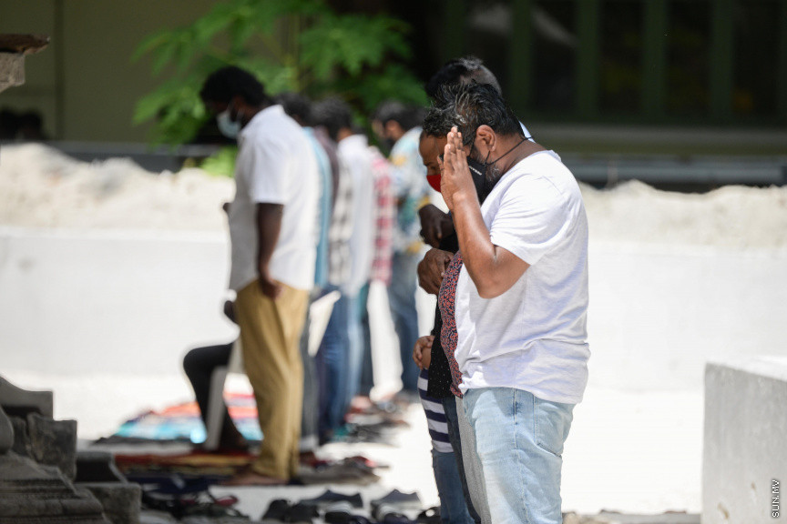 ބަޔަކު ނަމާދަށް ސަފު ހަދައިގެން: އިސްލާމް ދީނުގައި ވަރުގަދައަށް ހިފަހައްޓަން ޚުތުބާގައި ގޮވާލި -- ސަން ފޮޓޯ/ ފަޔާޒު މޫސާ