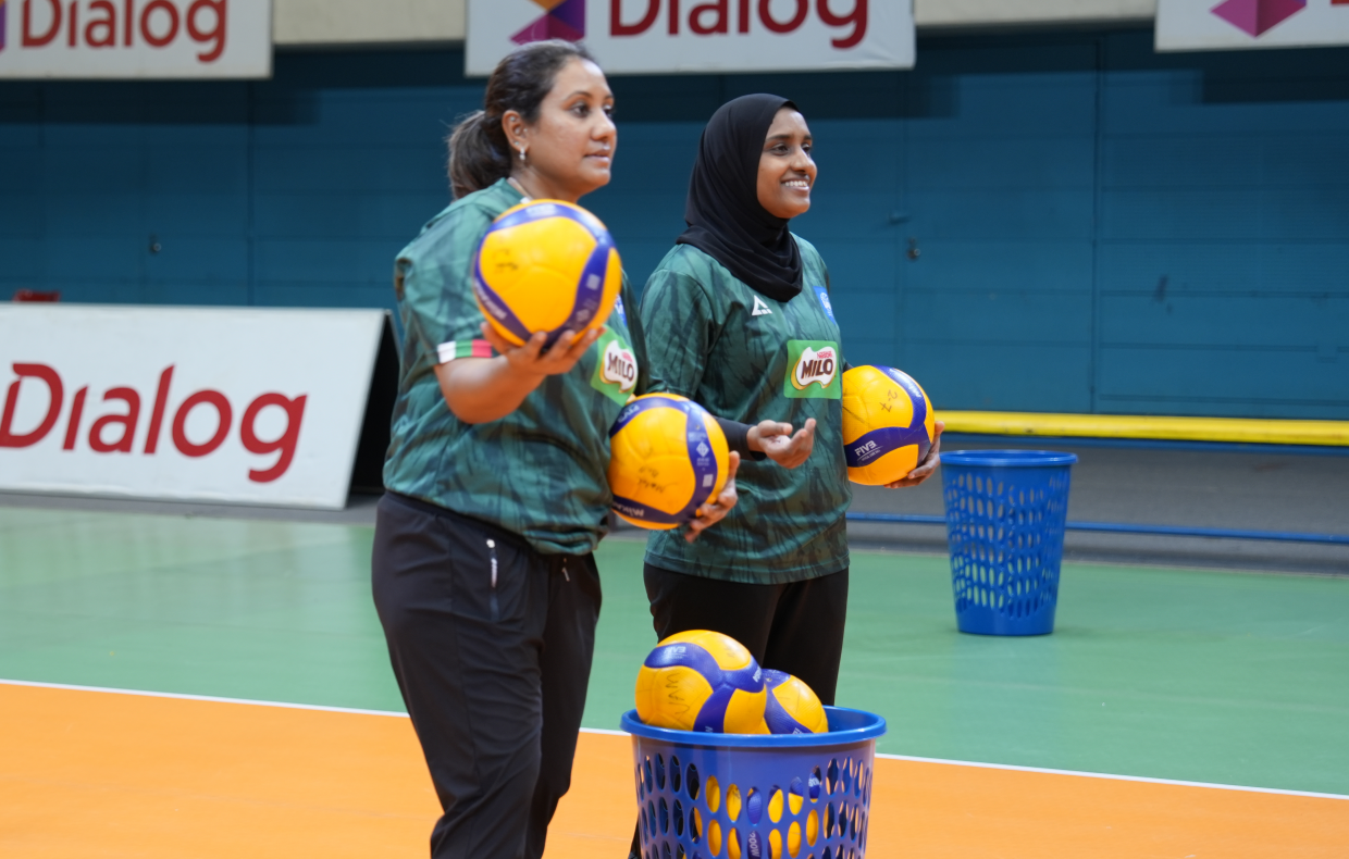 ލަންކާގައި އަންހެން ވޮލީ ޓީމުން ބޭއްވި ފުރަތަމަ ފަރިތަކުރުންތަކުގެ ތެރެއިން-- ފޮޓޯ: ވީއޭއެމް