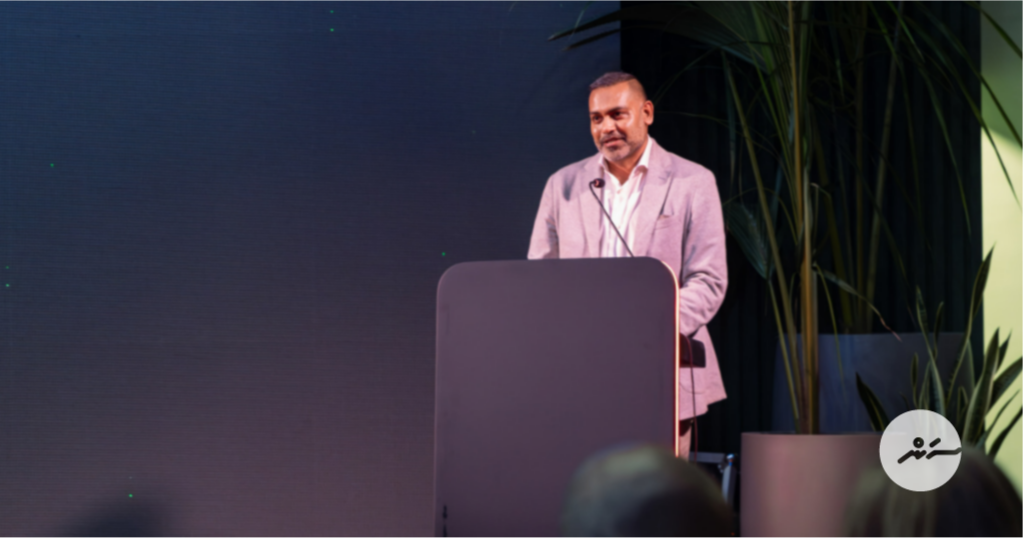 ސަން ޓްރެވަލްސްގެ ސީއީއޯ ދީޕަކް ސަން ޓްރެވަލްސް ރީބްރޭންޑްކުރުމަށް ބޭއްވި ހަފުލާގައި ވާހަކަ ދައްކަވަނީ --- ސަން ފޮޓޯ/ މުހައްމަދު ޢަފްވާން ޞަލާހު