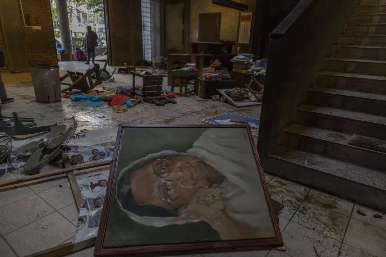 ބަންގްލަދޭޝްގެ ހިނގި ހަމަނުޖެހުންތަކުގައި ޗަޔަނައުތު ކިޔާ ސަގާފީ ޖަމިއްޔާއެއްގެ އޮފީހަށް ގެއްލުންދީފައި. ފޮޓޯ/އަނަދޮލުއޭޖެންސީ