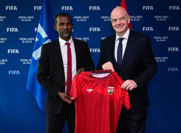 ރައީސް މުއިއްޒާއި ފީފާގެ ރައީސް މެޗެއް ކުޅެނީ