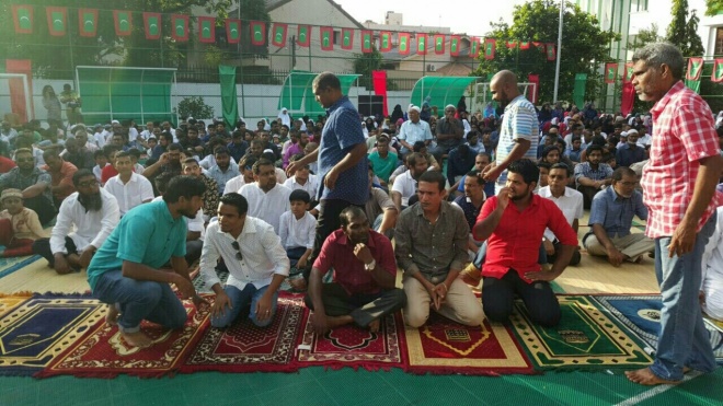 ލަންކާގައި ހުންނަ ސޯސަންވިލާގައި ދިވެހީން ބޮޑު ޖަމާއަތުގައި އީދުނަމާދުކޮށްފި