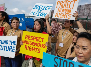 ކޮޕް30 ސަމިޓްގެ ބޭރުގައި އެތައް ބަޔަކު މުޒާހަރާ ކުރަނީ